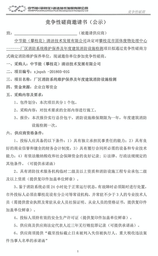 廠區(qū)消防系統(tǒng)維護(hù)保養(yǎng)及年度建筑消防設(shè)施檢測(cè)項(xiàng)目競(jìng)爭(zhēng)性磋商邀請(qǐng)書(shū)(公示)