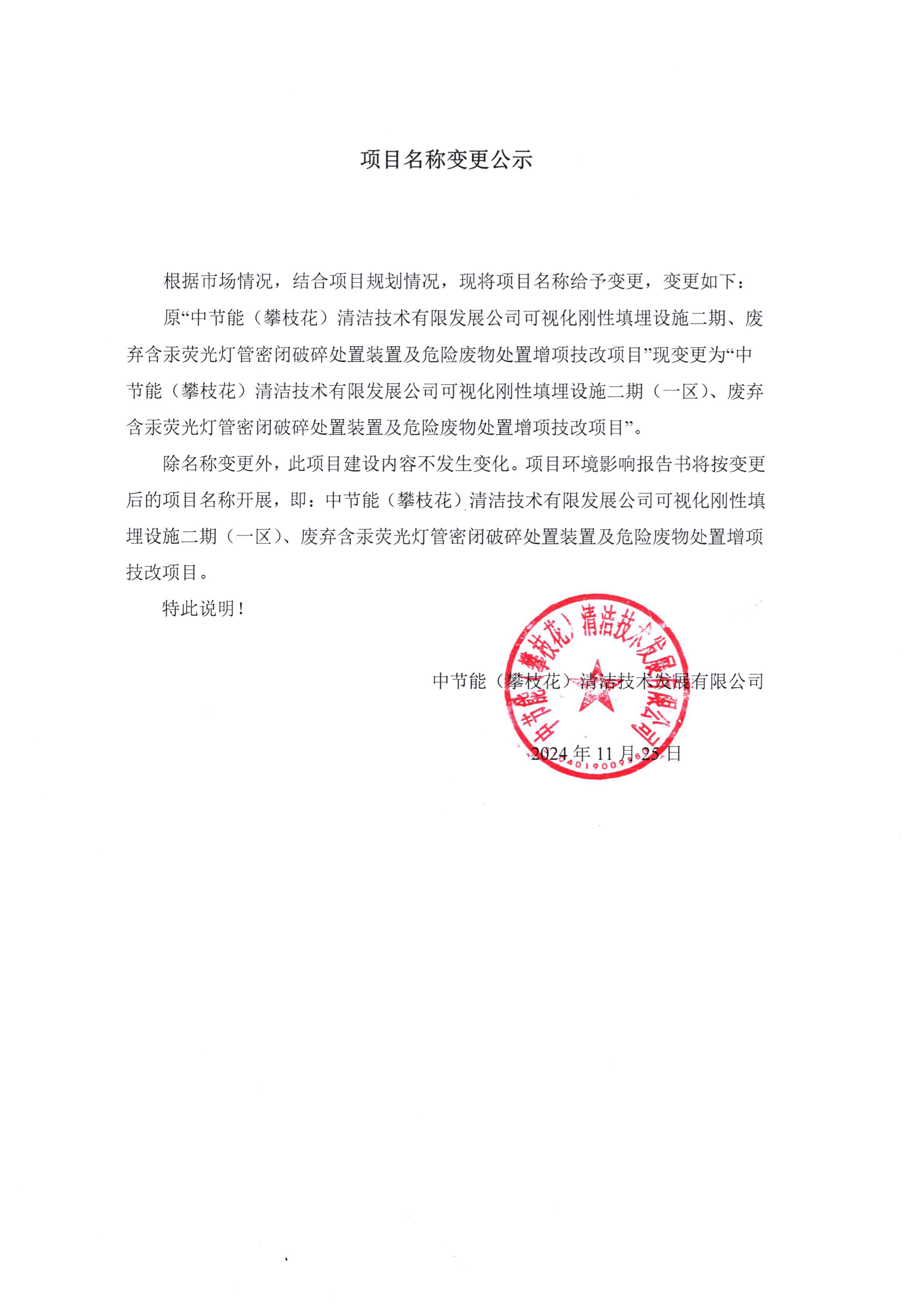 中節(jié)能(攀枝花)清潔技術(shù)發(fā)展有限公司關(guān)于項(xiàng)目名稱變更公示