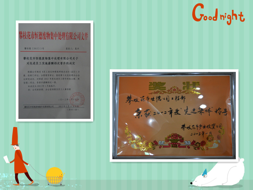 2012年12月公司由袁總帶隊,前往北京參加環(huán)保部舉辦的危險廢物經(jīng)營單位培訓班,一行四人考試成績?yōu)閮?yōu),均獲得環(huán)境保護部固體廢物管理中心頒發(fā)的證書。
