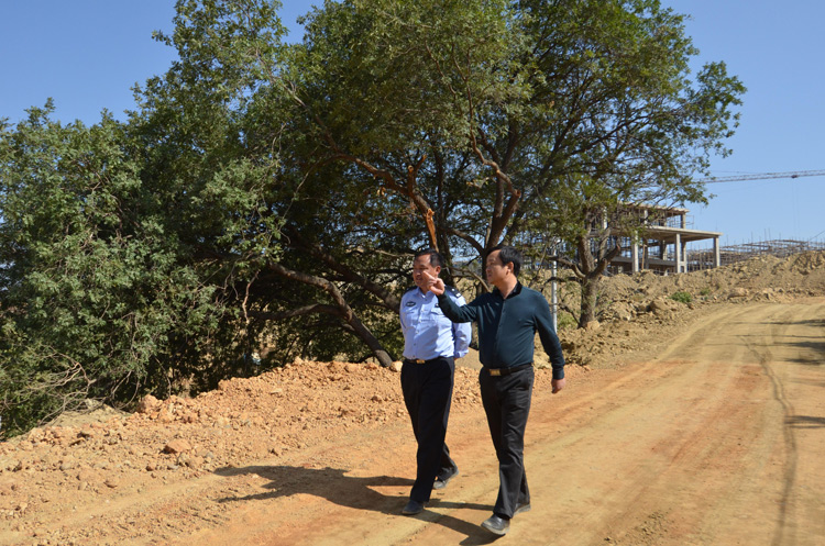 2013年3月14日袁總帶領(lǐng)恒德公司全體員工檢查工地,袁杰總經(jīng)理對項目生活區(qū)、廠區(qū)的生態(tài)建設(shè)作出嚴格要求,對原有樹木保護、綠化、排水工作進行詳細布置落實。