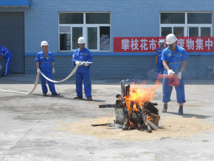 為提高員工的安全生產(chǎn)意識,增強員工火災(zāi)處置能力,我公司于2015年9月24日組織員工進行安全生產(chǎn)消防演練。演練內(nèi)容包括火災(zāi)撲救、控制、火場協(xié)調(diào)指揮、物資轉(zhuǎn)移、火場警戒、人員疏散等。